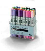 Pale Yellow (Y11), Lemon Yellow (Y13), Cadmium Yellow (Y15), Chrome Orange (YR04), Pale Sepia (YR24), Flesh (R02), Vermilion (R08), Pink (RV11), Crimson (RV29), Violet (V09), Process Blue (B05), Peacock Blue (B06), Light Blue (B14), Ultramarine (B29), Pale Blue (B32), Prussian Blue (B39), Nile Green (G07), Forest Green (G17), Lime Green (G21), Ocean Green (G28), Yellow Green (YG03), Burnt Sienna (E09), Burnt Umber (E29), Sand (E33), Cool Gray No 1 (C-1), Cool Gray No 3 (C-3), Cool Gray No 5 (C-5), Cool Gray No 7 (C-7), Cool Gray No 9 (C-9), Warm Gray No 1 (W-1), Warm Gray No 3 (W-3), Warm Gray No 5 (W-5), Warm Gray No 7 (W-7), Warm Gray No 9 (W-9), Black (100), Special Black (110).