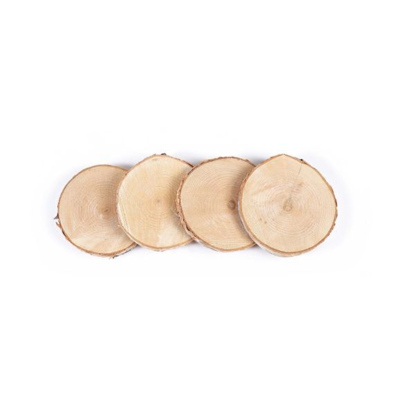 Réf. : 107580 Sachet de 4 rondelles de bois d'un diamètre compris entre 7 et 10cm.