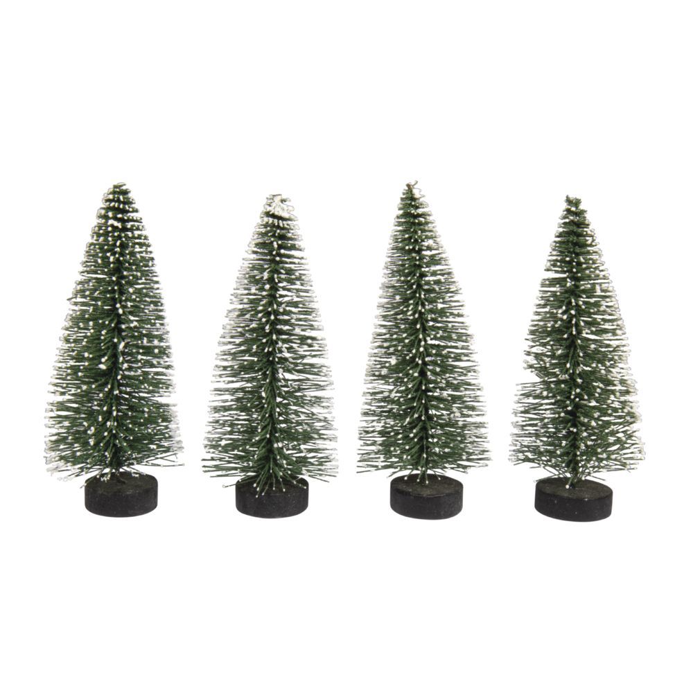 Les sapins enneigés très décoratifs mesurent 10 cm et sont emballés de manière appropriée dans une boîte en PVC (4 pièces).