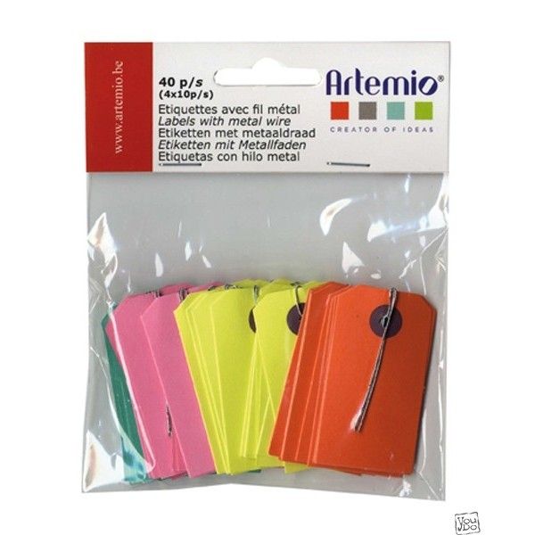 40 ETIQUETTES COULEURS FIL METAL 3.5x5CM