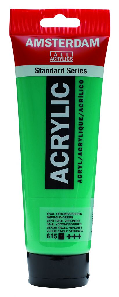 Acrylique Amsterdam Standard, une peinture acrylique d’excellente qualité et un grand choix de 80 couleurs ayant une résistance à la lumière élevée ou même très élevée, grâce à l’usage de pigments purs et résistants à la lumière.