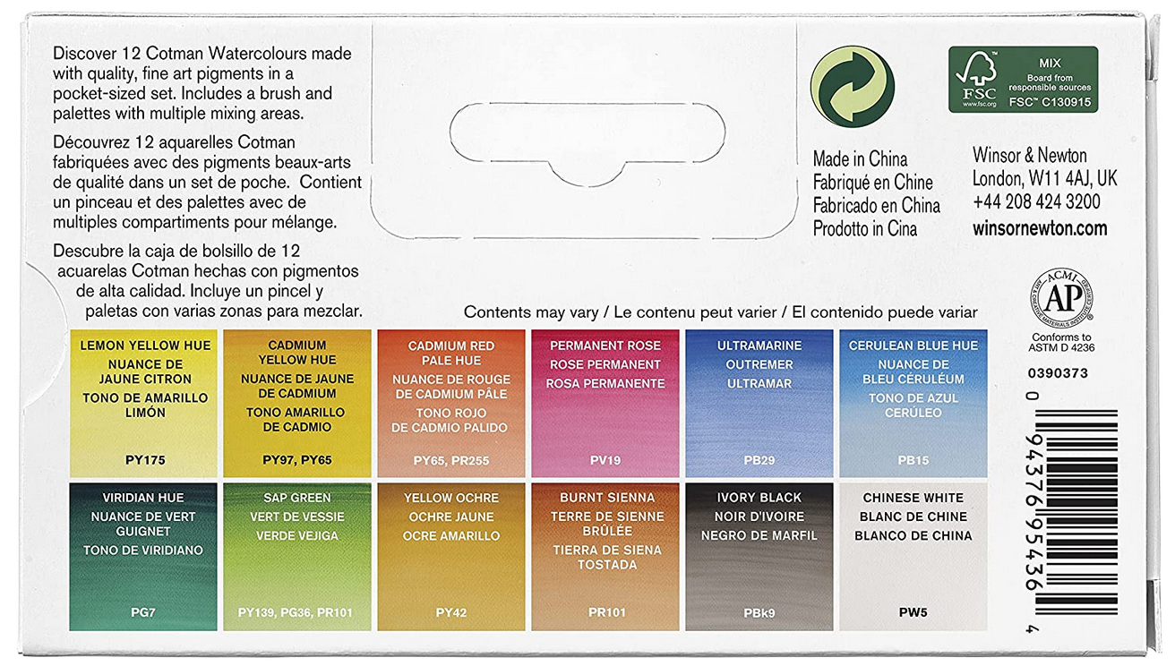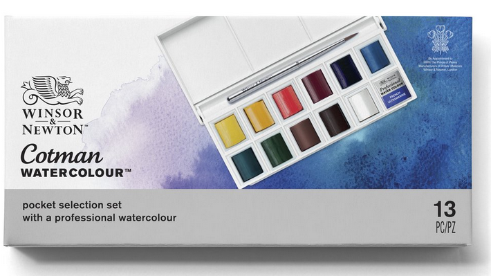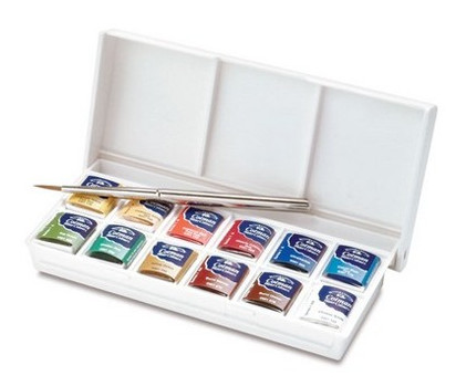 Découvrez ce set de 12 1/2 godets d'aquarelle fine COTMAN fabriquée avec des pigments Beaux-Arts de qualité.