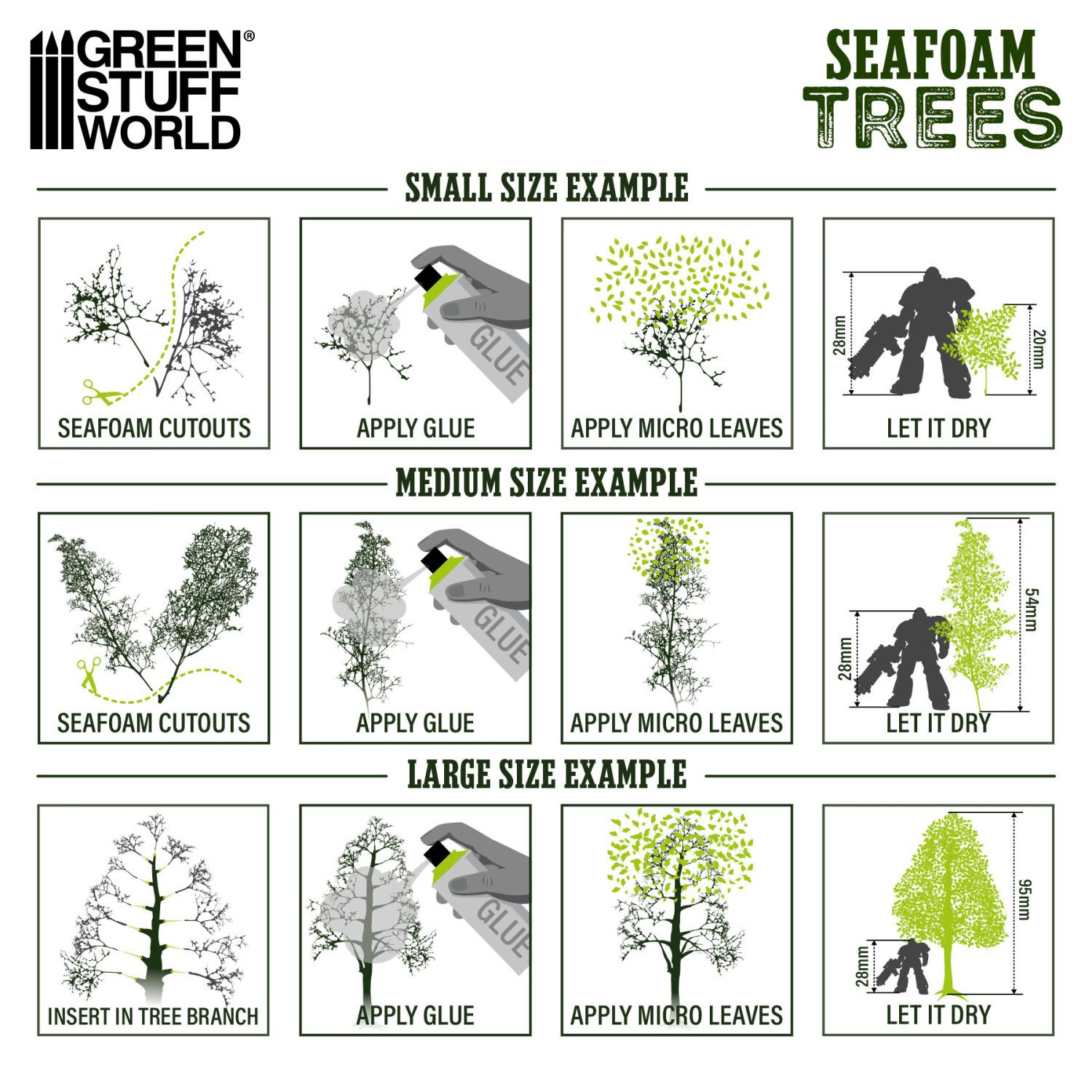 Le réalisme : le Seafoam est connu pour son aspect réaliste, ce qui est essentiel pour créer des paysages et des décors authentiques dans les projets miniatures. Sa structure ramifiée et ses feuilles fines imitent la forme et le feuillage des arbres réels.