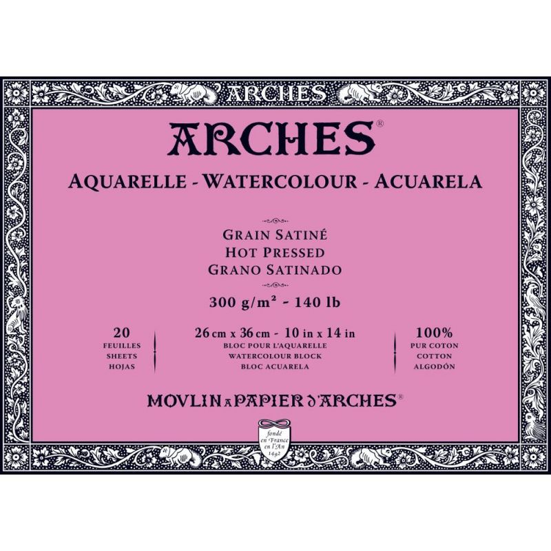 BLOC AQUARELLE 26X36CM ARCHES GRAIN SATINE 300GRS 20 FEUILLES