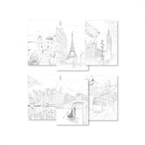 Bloc de coloriage multi-techniques de 20 feuilles A4 250g, Les villes.