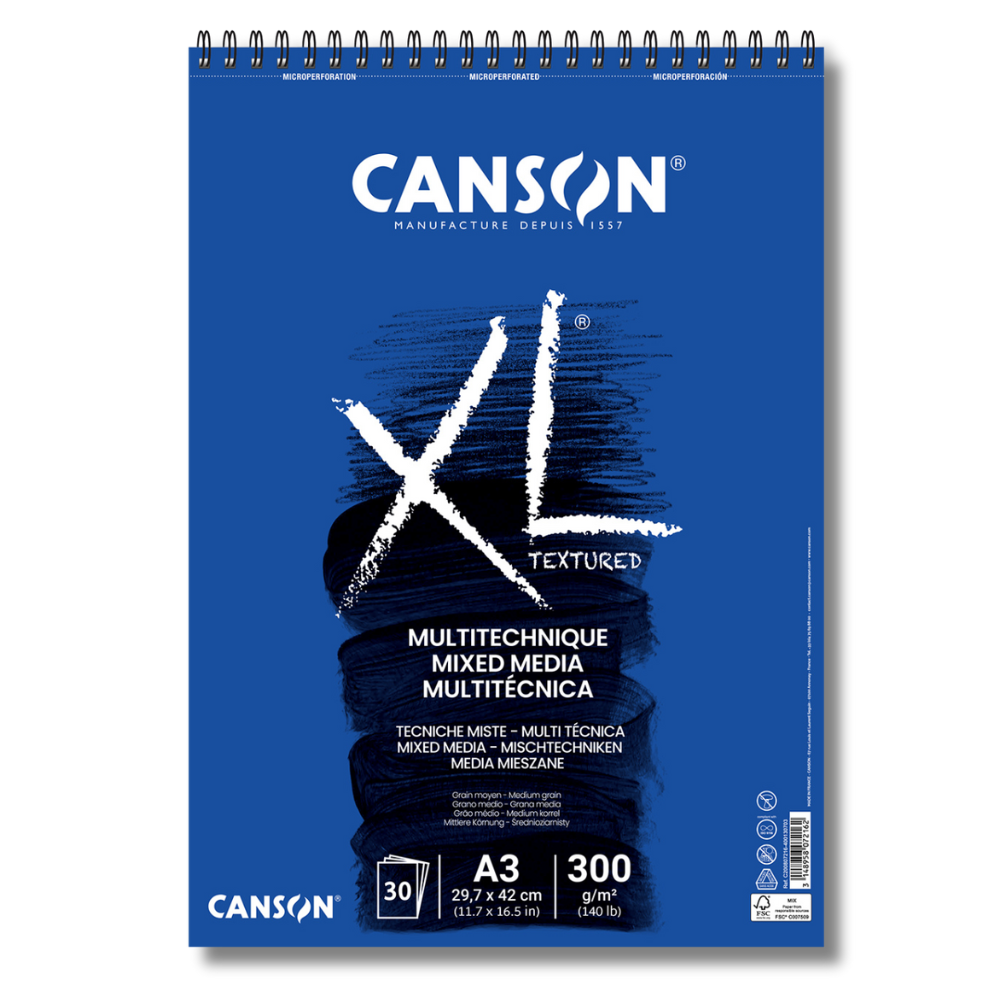 Le bloc A3 XL Mixmedia Canson est un papier multi technique, grammage 300 g/m², blanc, au grain moyen, avec 30 feuilles.