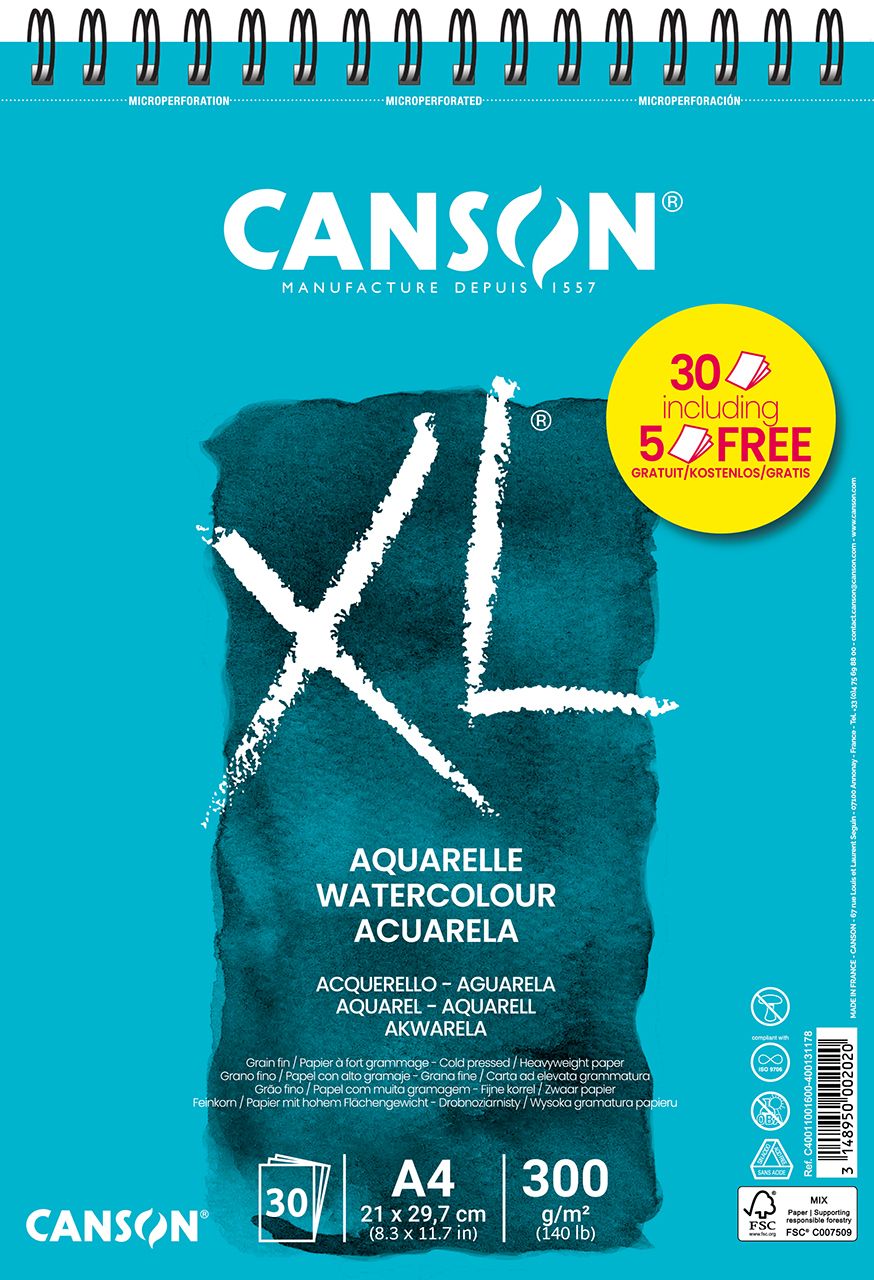 Accueil > PAPIERS & BLOCS > Aquarelle > Blocs Cellulose > Canson > BLOC XL SPIRALE A4 AQUARELLE 300G 30FEUILLES DONT 5 Offertes