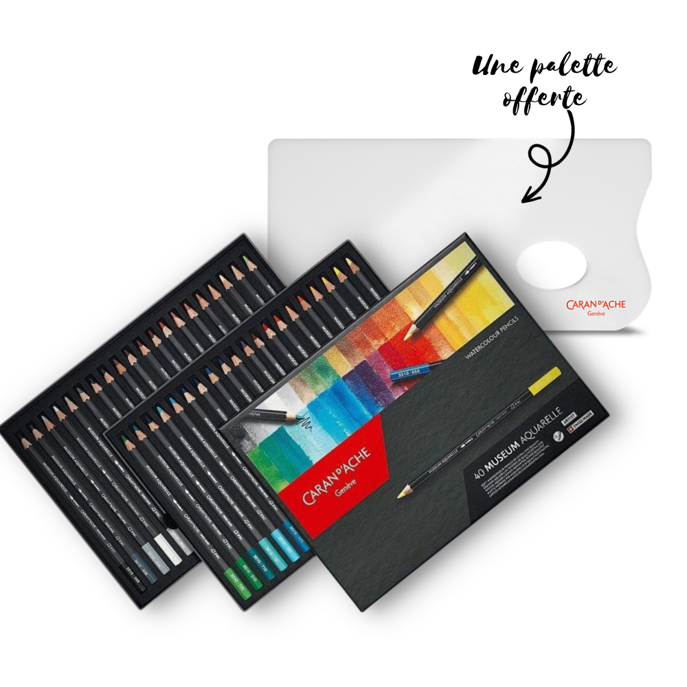 BOITE 40 CRAYONS AQUARELLABLES MUSEUM CARAN D'ACHE + Palette Offerte