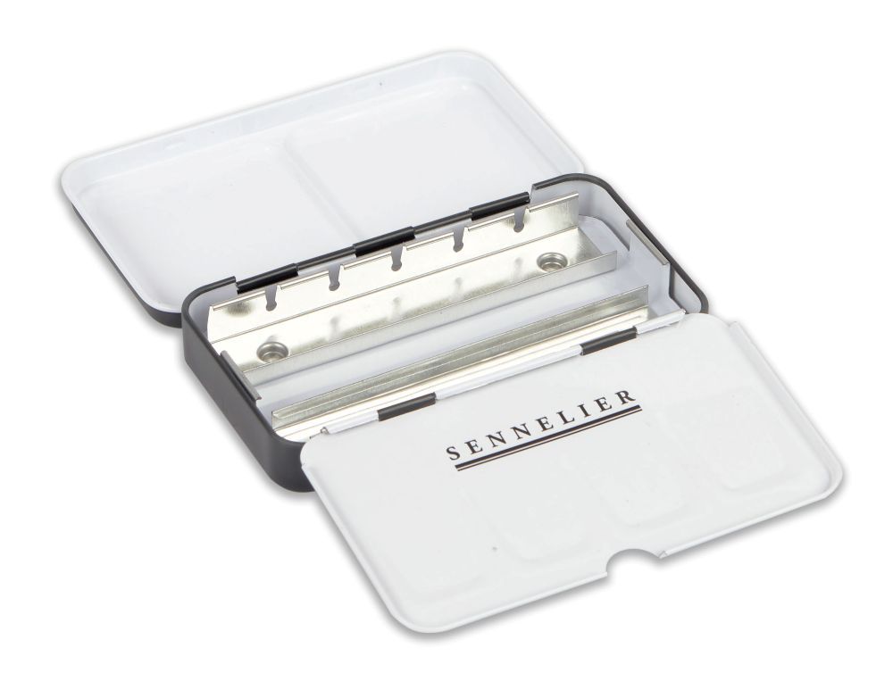 Accueil > PEINTURES > Aquarelle > Palettes, blouses & accessoires > BOITE AQUARELLE DE POCHE VIDE 12 DEMI GODETS SENNELIER
