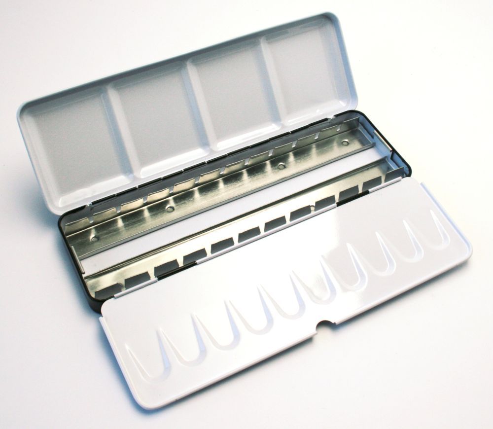 Boîte en métal pouvant contenir 24 demi godets d'aquarelle