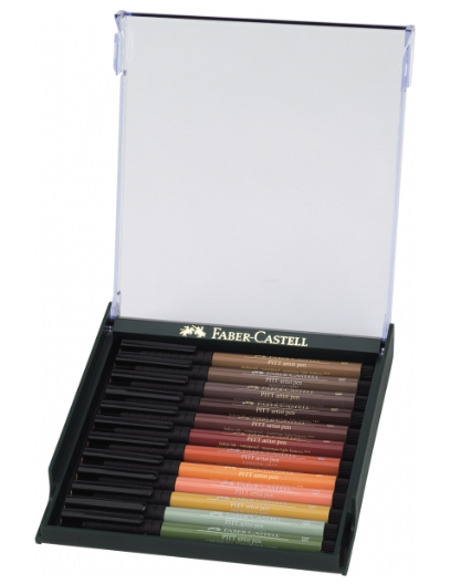 Boite de 12 feutres PITT Artist Pen - Assortiment Terre - Faber Castell.