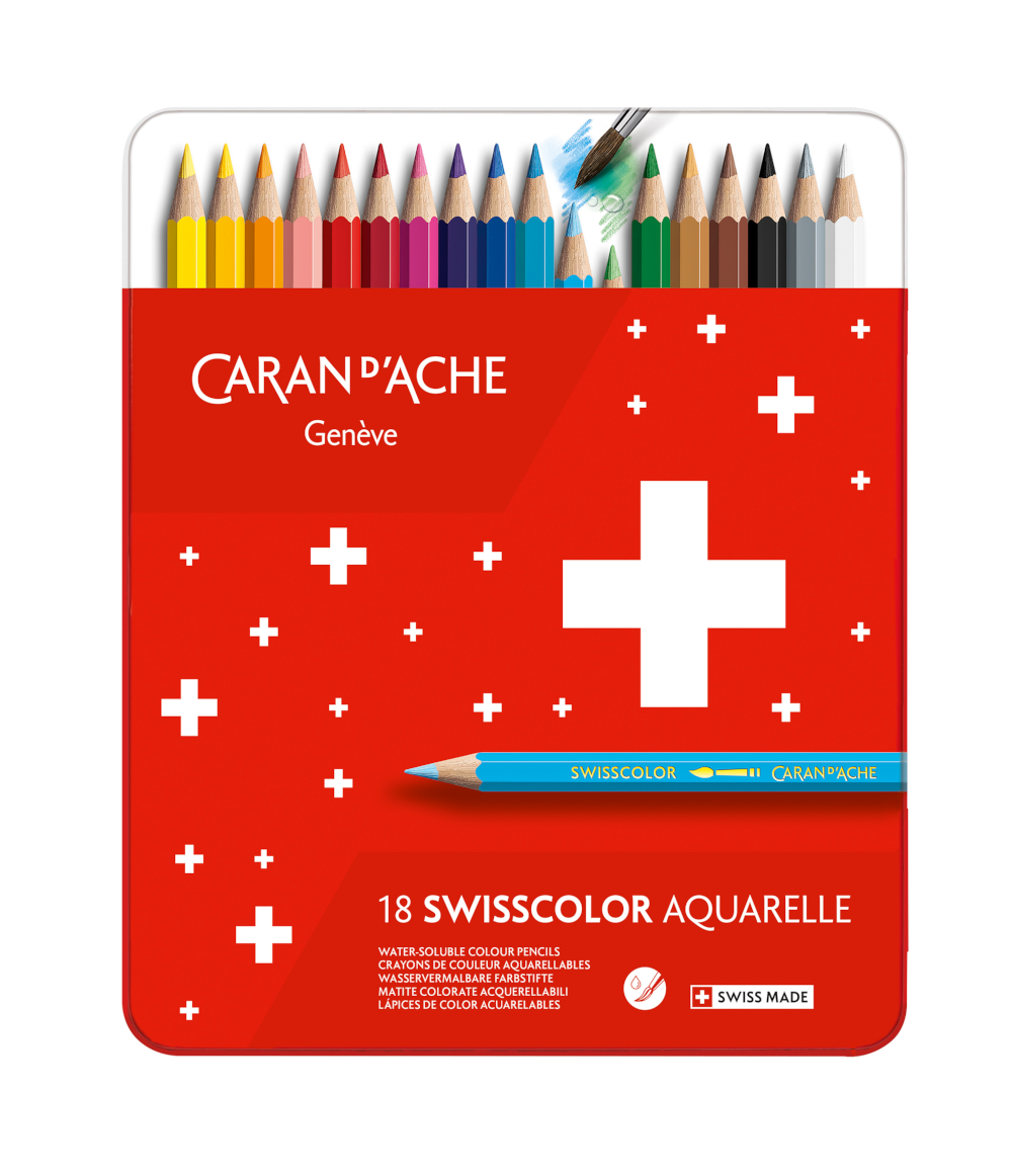 Boîte métal de 18 crayons de couleurs aquarellables SwissColor Caran d'Ache.