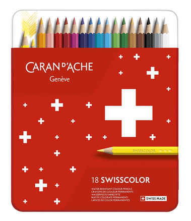 Boîte métal de 18 crayons de couleurs permanents SwissColor Caran d'Ache.