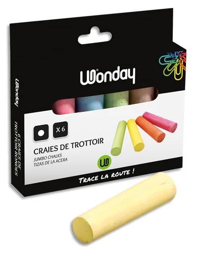 Accueil > LOISIRS CRÉATIFS > Décorations > Ardoise > BOITE DE 6 CRAIES DE TROTTOIR RONDES COLORIS ASSORTIS