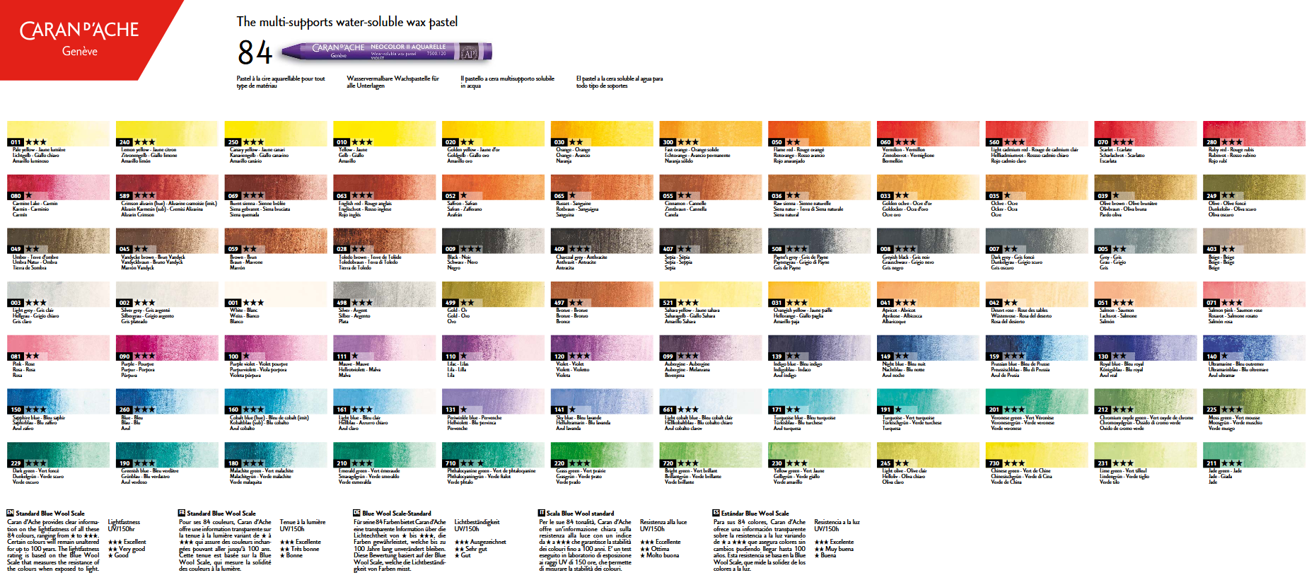 DÉTAILS DU PASTEL : Pastel à la cire aquarellable - Texture tendre et veloutée, ne poudroyant pas - Pouvoir couvrant supérieur - Excellente tenue à la lumière - Couleurs lumineuses - Diamètre Ø 8.65 mm
