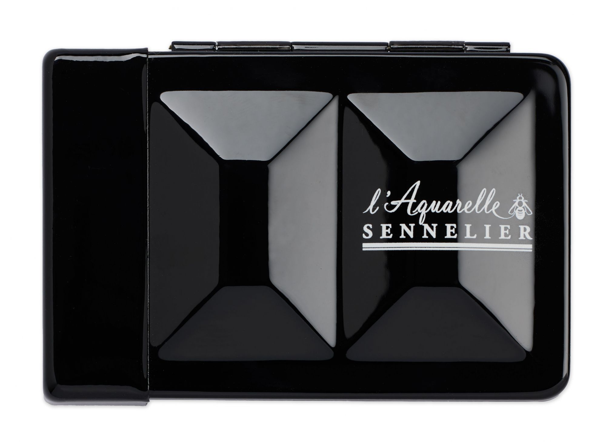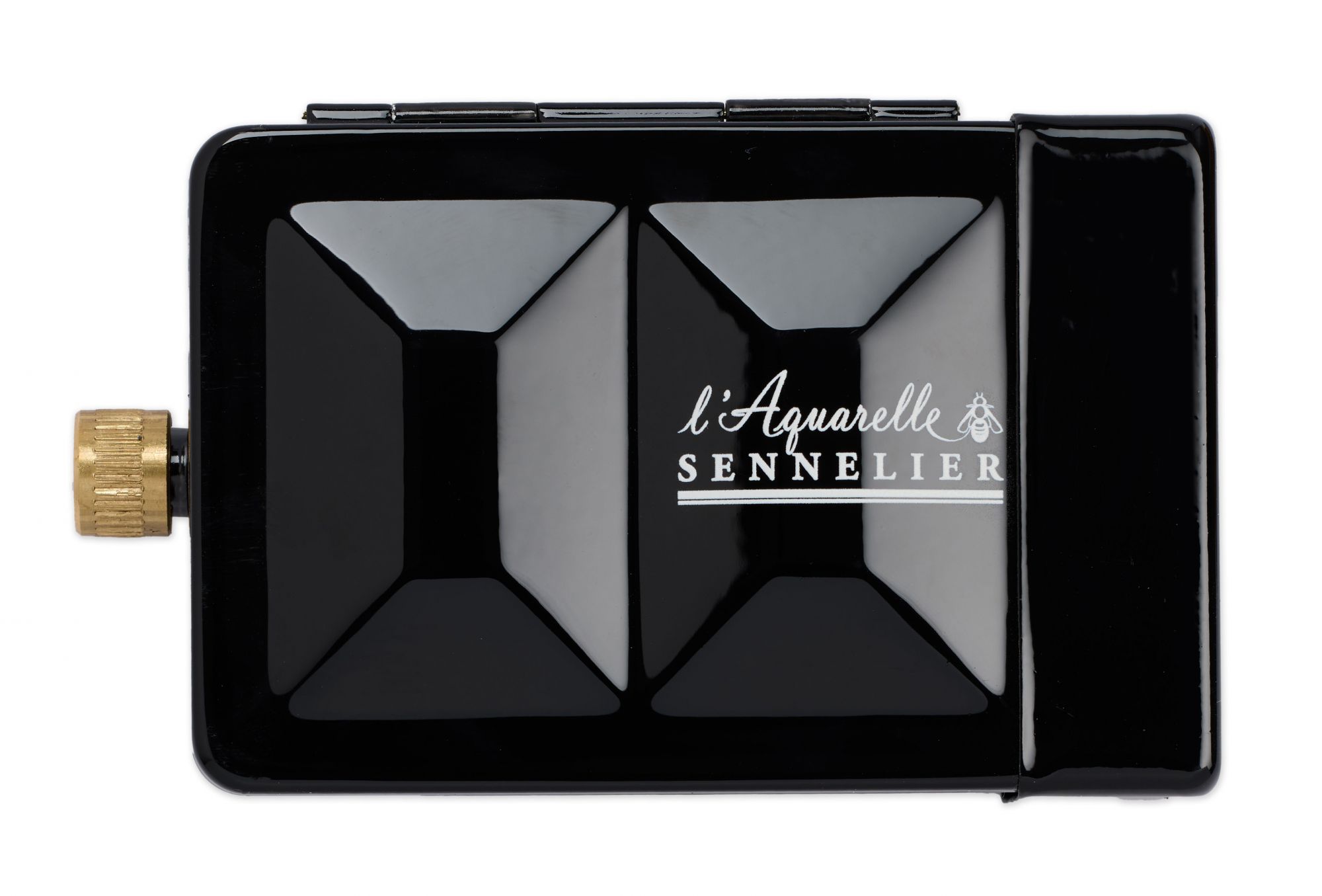 BOITE METAL EMAILLE NOIR AVEC RESERVE D'EAU 8 1/2 godets AQUARELLE EXTRA FINE SENNELIER + CADEAUX