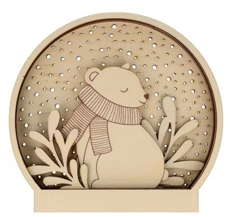 Boule relief en bois Ours de la collection Let It Snow à personnaliser pour réaliser un joli décor lors des fêtes de fin d'année! Elle mesure 15 cm x 16 cm x 2 cm environ
