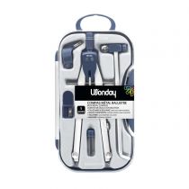 Ce compas JPC est fabriqué en métal nickelé et dispose d’un guide crémaillère, d’une molette centrale à réglage micrométrique, de deux articulations, d’une bague d’attache et d’une rallonge.