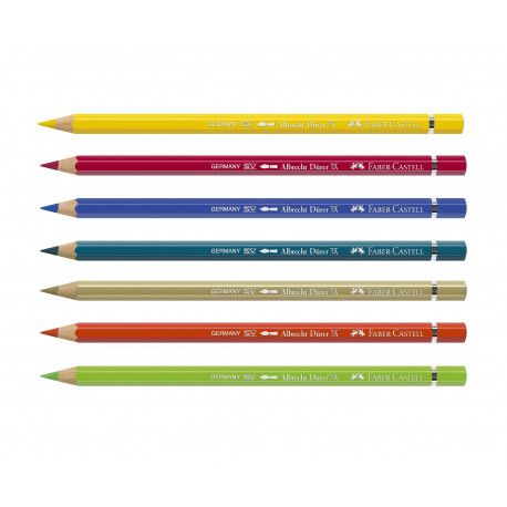 Les crayons de couleur aquarellables Albrecht Dürer permettent à l'artiste une expression variée du dessin, de la peinture et de l'aquarelle. Des matériaux de haute qualité et l'expérience de Faber-Castell depuis plus de 250 ans font en sorte que ces crayons de couleur aquarellables sont inégalés dans leur brillance et leur solubilité dans l'eau. Quelques coups de pinceaux suffisent pour étaler les couleurs et faire ressortir toute leur brillance.