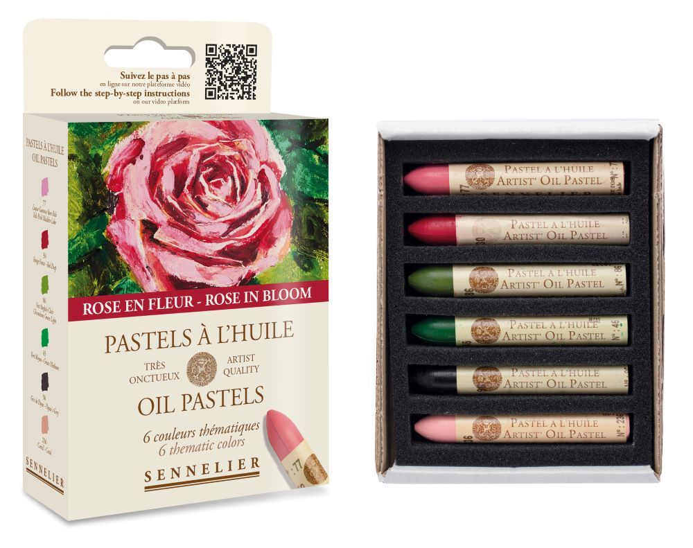 ETUI DECOUVERTE 6 PASTELS A L HUILE THEME ROSE EN FLEUR