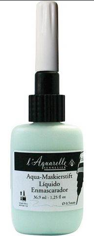 Le liquide de masquage permet de faire des réserves sur le papier, il sèche très rapidement, prend la forme d' une surface caoutchouteuse et est très facile à retirer en frottant avec le doigt. Il laisse alors apparaître la surface blanche du papier.