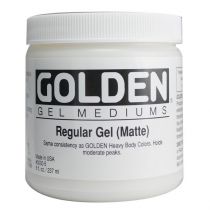 Réf. : 2-03030 Les gels GOLDEN offrent à l’artiste un choix illimité de textures et de matières. Composés de la même émulsion polymère non jaunissante que celle utilisée pour la fabrication des couleurs GOLDEN, ils offrent une excellente adhérence sur les supports non gras. Ajoutés à la couleur, ils permettent de créer des volumes, d’augmenter la quantité de peinture, de réduire la viscosité... Ils servent également de colle pour les incrustations et superpositions. D’aspect laiteux en pot, ils deviennent transparents au séchage.