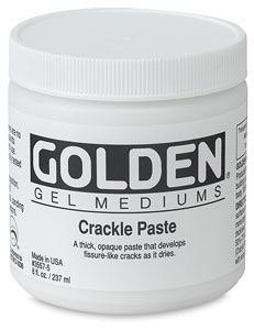 Gel épais, blanc et opaque qui en séchant développe des craquelures. La couleur peut être mélangée directement au gel ou appliquée sur la surface déjà craquelée.