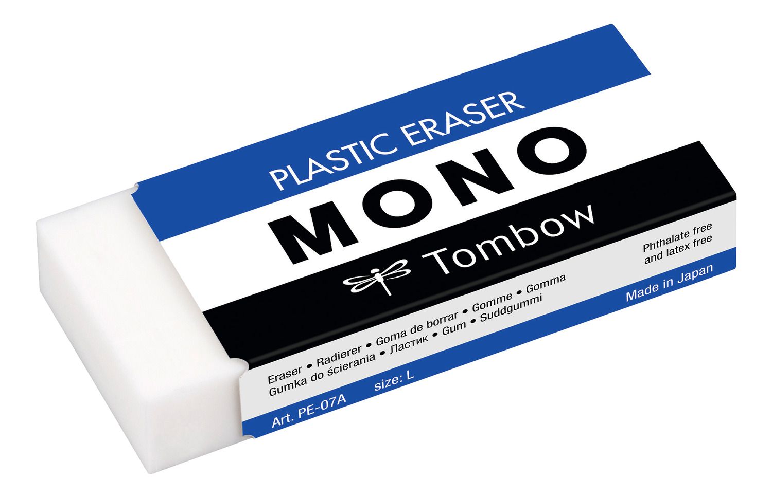La véritable gomme classique du Japon - lancée en 1969 sur le marché japonais. La gomme MONO est disponible en trois tailles XS, M et L. La consistance souple de la gomme en plastique permet un effacement particulièrement agréable et d'excellents résultats de gommage. Un étui de papier cartonné protège la gomme de la saleté. Les coins de l'étui sont biseautés afin de ne pas couper la gomme par une forte pression lors de l'utilisation. Matière: PVC, sans phtalates et sans latex.