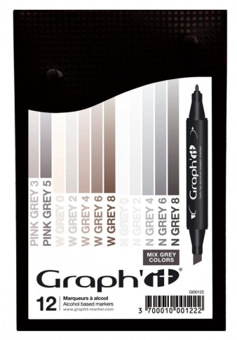 Réf. : GI00122 Set de 12 marqueurs Graph'It - Mélange de gris