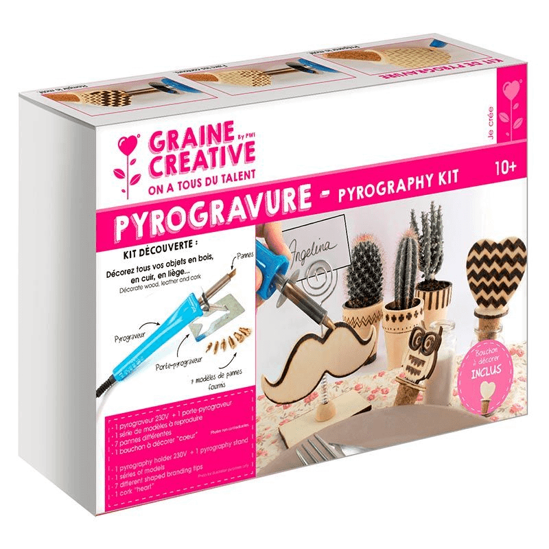 Accueil > LOISIRS CRÉATIFS > Décorations > Pyrogravure > KIT PYROGRAVURE GRAINE CREATIVE