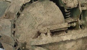 Boue épaisse industrielle, couleur de boue grisâtre, originaire de l'environnement urbain, où la présence de l'activité humaine, la construction industrielle, les ruines et la décomposition ont provoqué cette nuance particulière de boue.