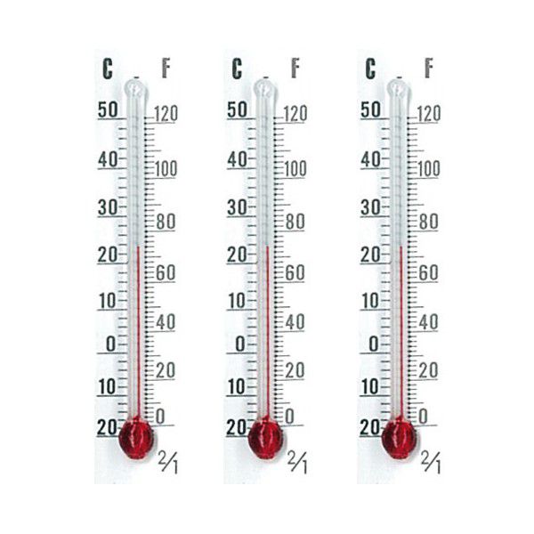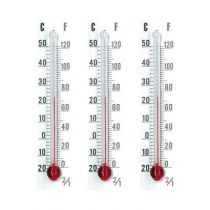 Réf. : 285017 Thermomètre à coller sur tous supports Thermomètre à alcool Affichage de la température en degré celsius et degré fahrenheit Hauteur : 5,5 cm Largeur : 1,1 cm Sachet de 3 thermomètres