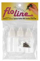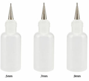 Lot de 3 flacons avec 3 embouts fins métalliques de 0.5mm, 0,7mm et 0.9mm.