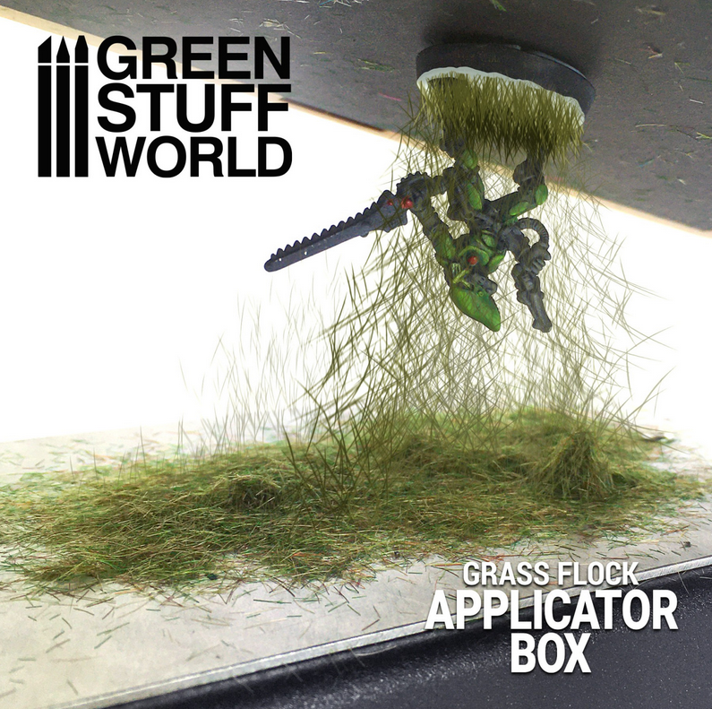 Le machine a flocage pour modelage Green Stuff World a besoin d'un courant électrique statique pour charger la herbe statique, en l'occurrence d'une pile de 9V (non fournie). C'est ce courant qui permet aux fibres d'être placées verticalement sur la base ou toute autre surface, donnant ainsi aux socles pour figurines, modèles ou dioramas la touche 3D réaliste que vous recherchez.