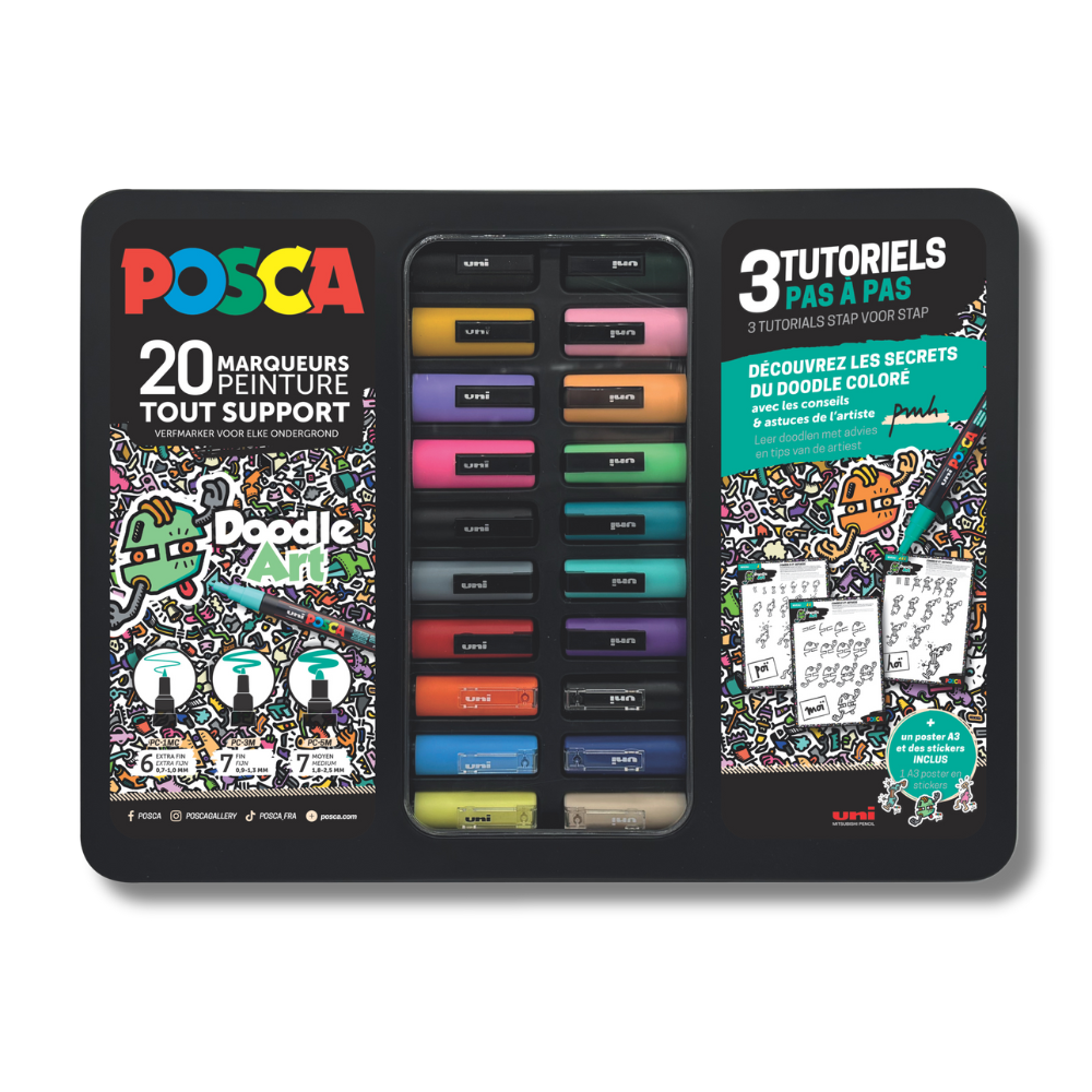 MALLETTE METAL NOIRE 20 POSCA DOODLE ART