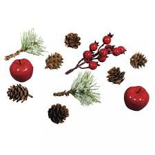 Contenu: 11 pièces, dimensions: cônes d'environ 2 à 3 cm de hauteur, pommes d'un diamètre d'environ 3,5 cm, brindilles scintillantes, longueur d'environ 8 cm, brindilles de baies d'environ 12 cm de hauteur.