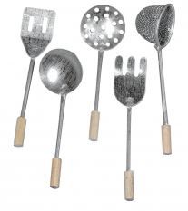 Réf. : 8625600npc Ustensiles de cuisine en métal/bois, 8 cm, sachet de 5 pièces, 5 sortes