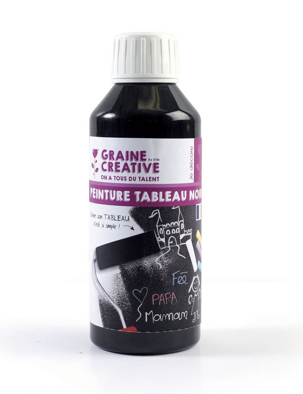 Cette peinture vous permettra de créer une zone "tableau noir" sur laquelle vous pourrez écrire avec une craie (et essuyer avec un chiffon humide).