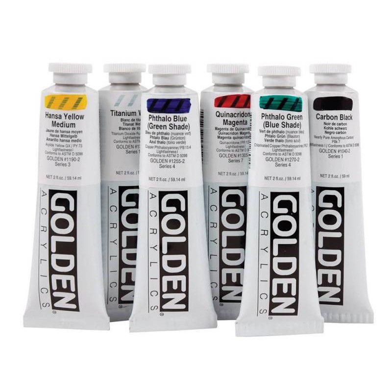 Les acryliques extra-fines Golden Heavy Body sont réputées pour leur texture épaisse d’une extrême onctuosité, qui permet de conserver la trace du pinceau et l’empreinte du couteau sur la toile.