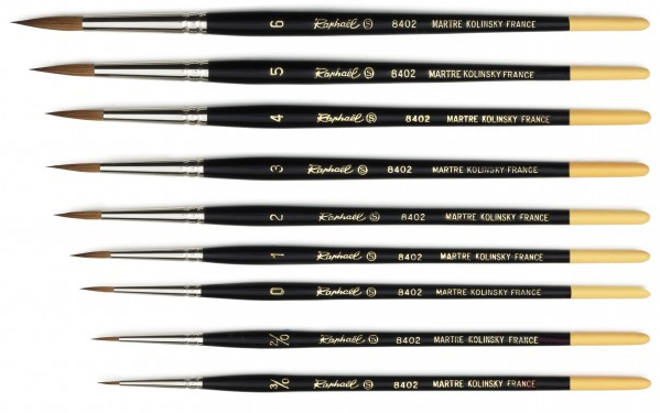 Pinceau aquarelle série 8402 de Raphaël en martre rouge Kolinsky extra