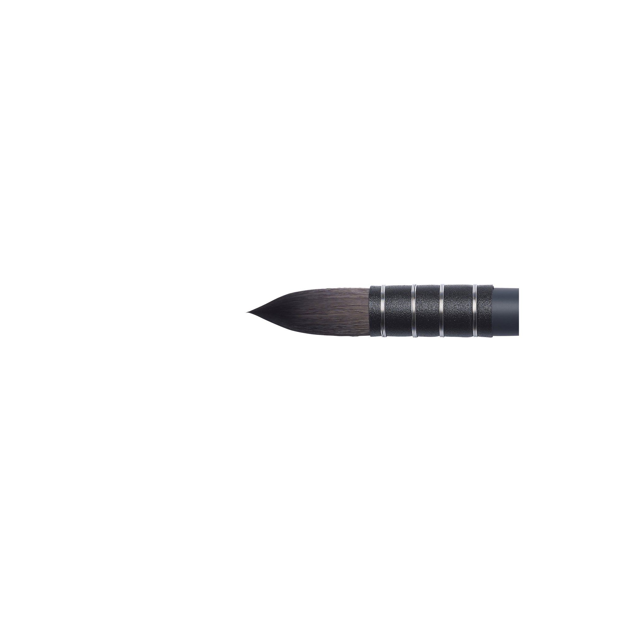 Un pinceau synthétique de qualité professionnelle qui offre la qualité d'un pinceau en poils naturels, sur un manche court ergonomique à double corps unique, dans un gris mat foncé, pour un contrôle et un confort optimal.