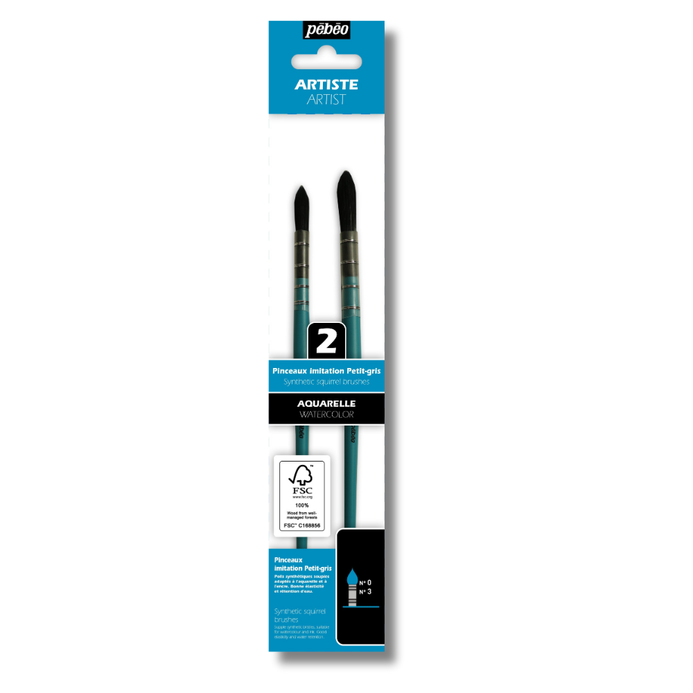 Set de 2 pinceaux aquarelle imitation petit-gris n° 0 et 3