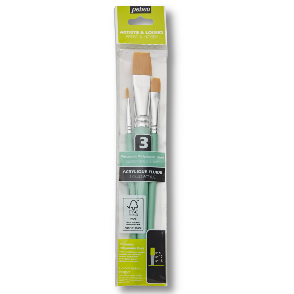 Accueil > PINCEAUX & COUTEAUX > Huile & Acrylique > Assortiments > POCHETTE 3 PINCEAUX MANCHE COURT PLAT