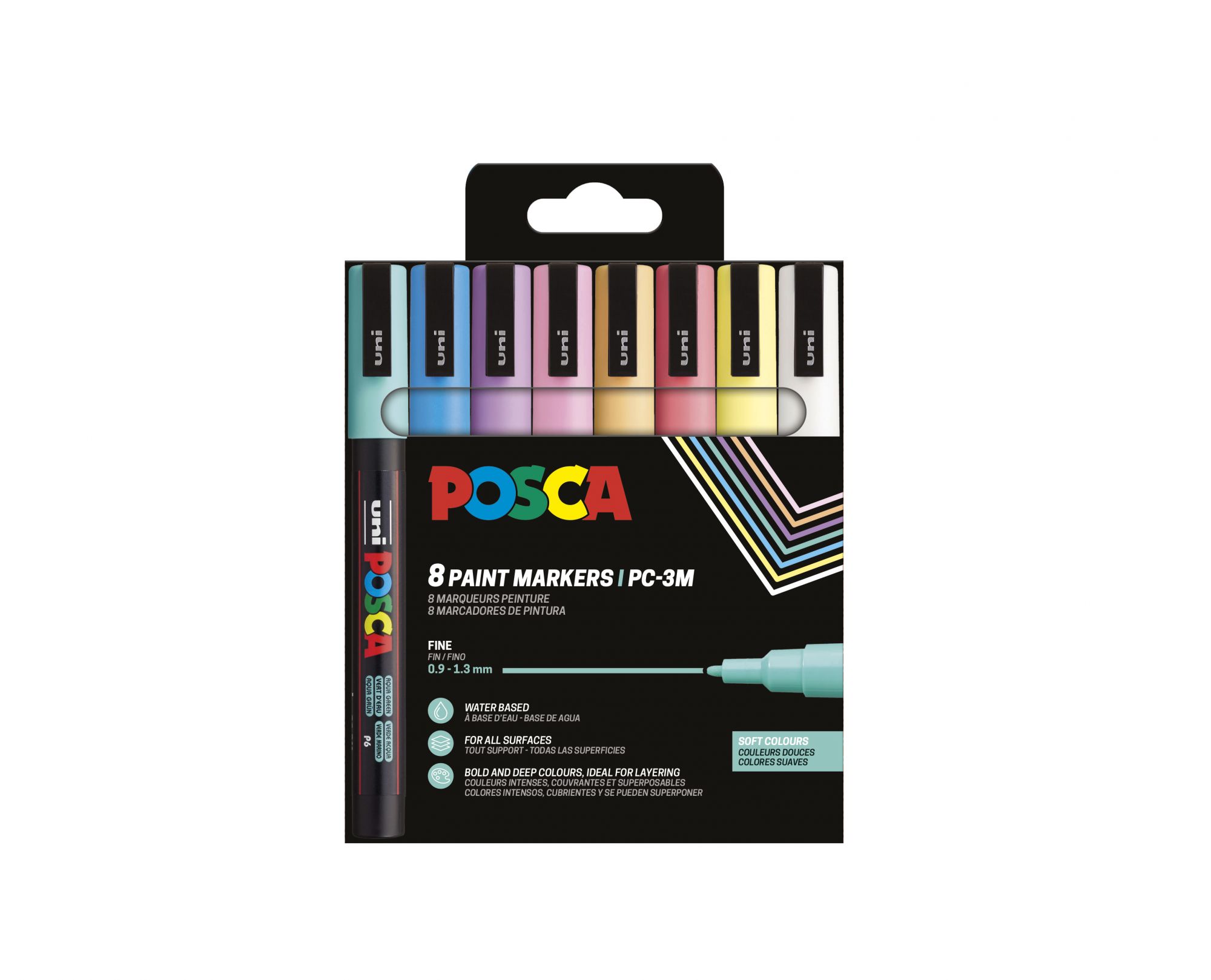 POCHETTE 8 POSCA PC3M COULEURS DOUCES