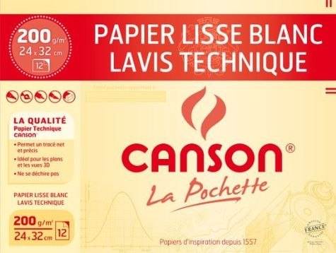 La Pochette Canson de 12 feuilles de papier lisse blanc lavis technique.