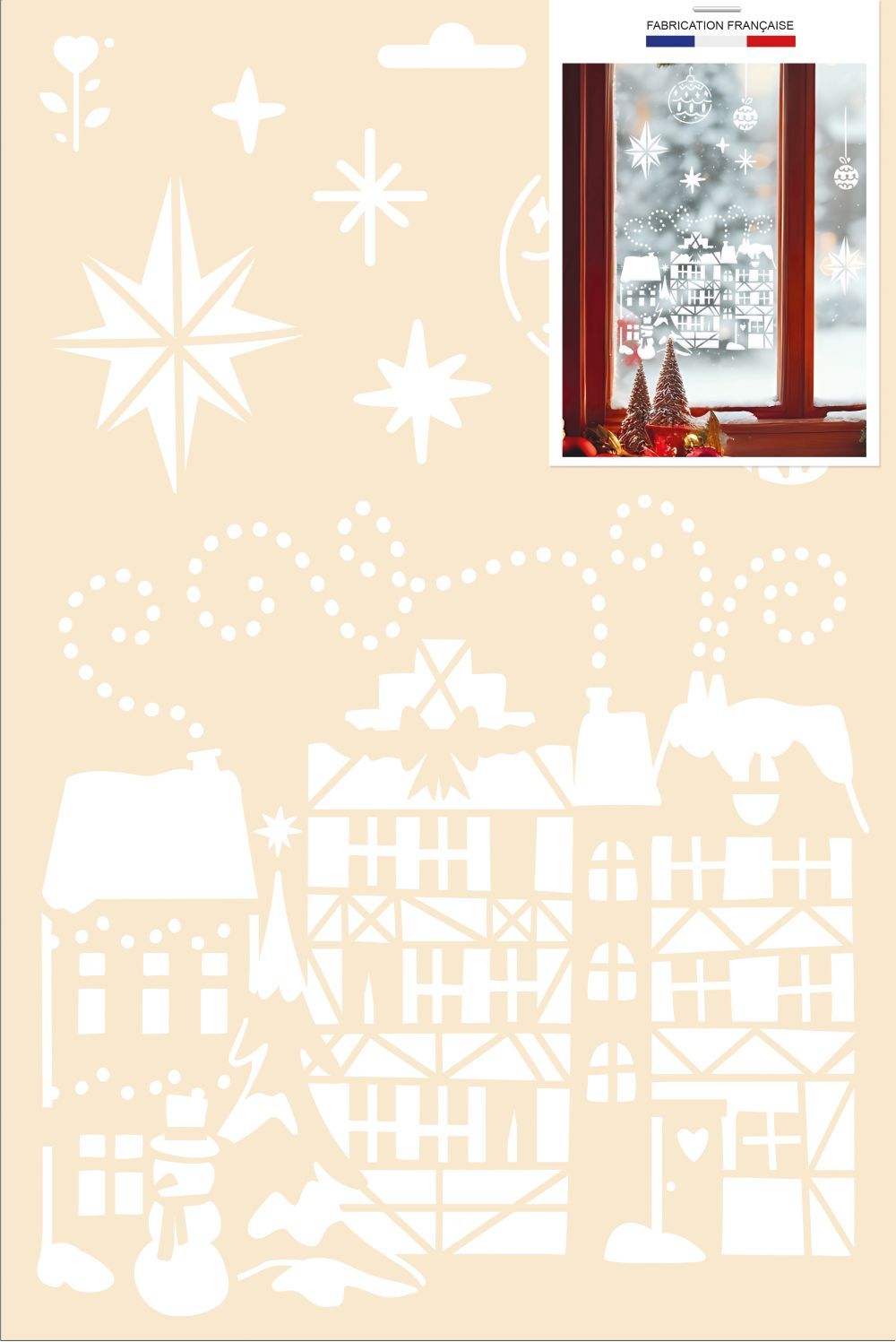 Réf. : 226118 Pochoir plastique format A4. A utiliser avec les bombes de neige pour décorer vos fenêtres.