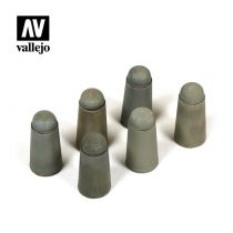 Six poteaux en pierre, modèle no. 1. Détail d'ambiance idéale dans les bases urbaines, trottoirs, accès ou seuils de portes ou portails.