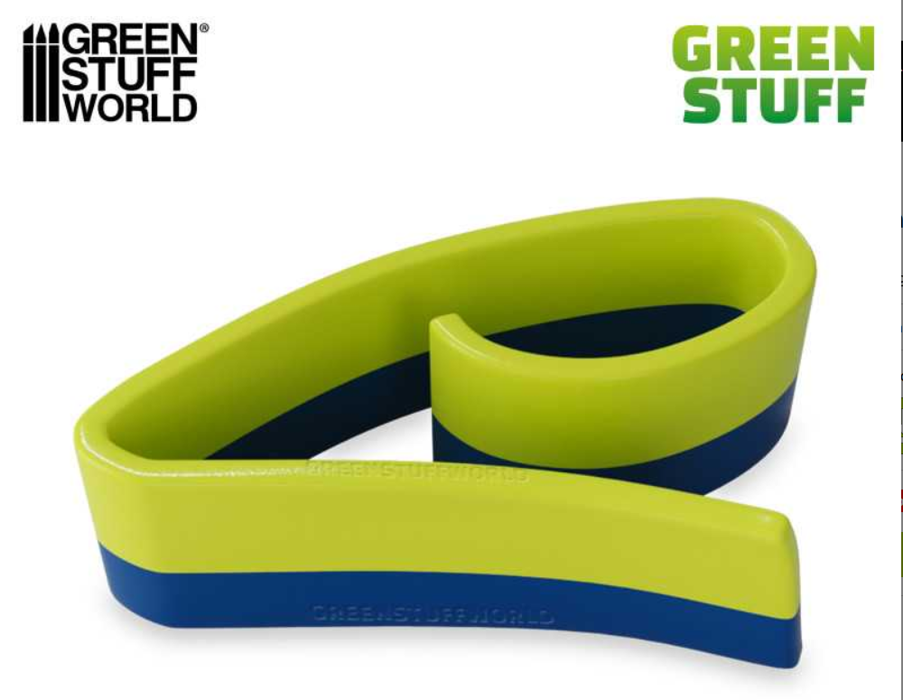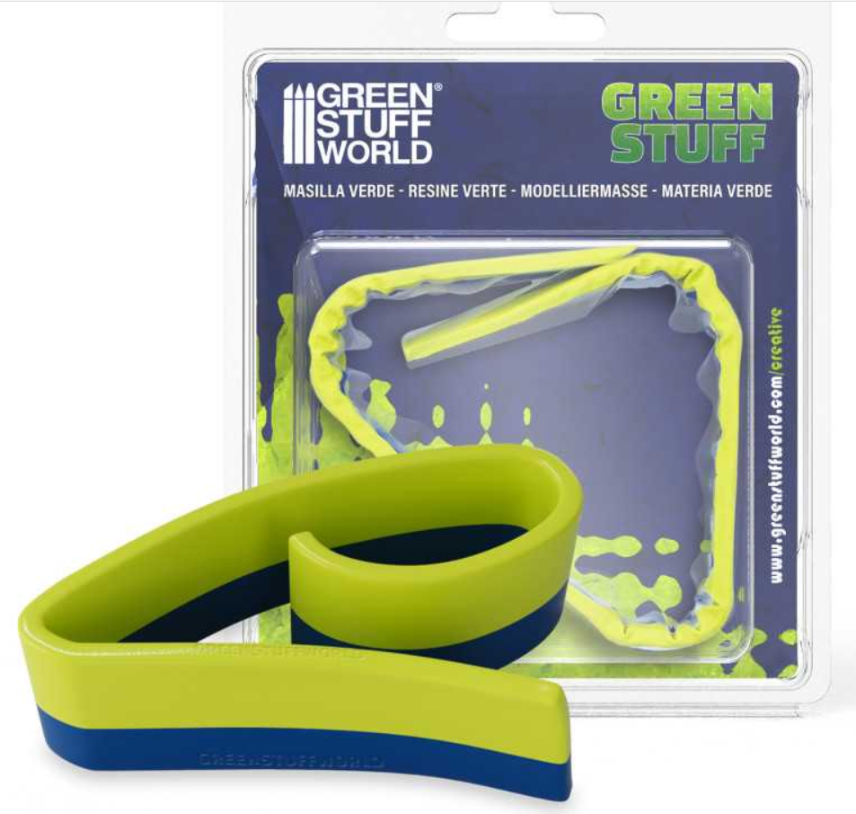 La Résine Verte ou Green Stuff est un pâte époxy plastique qui durcit à température ambiante et peut être achetée à la fois en rouleaux et en barre.