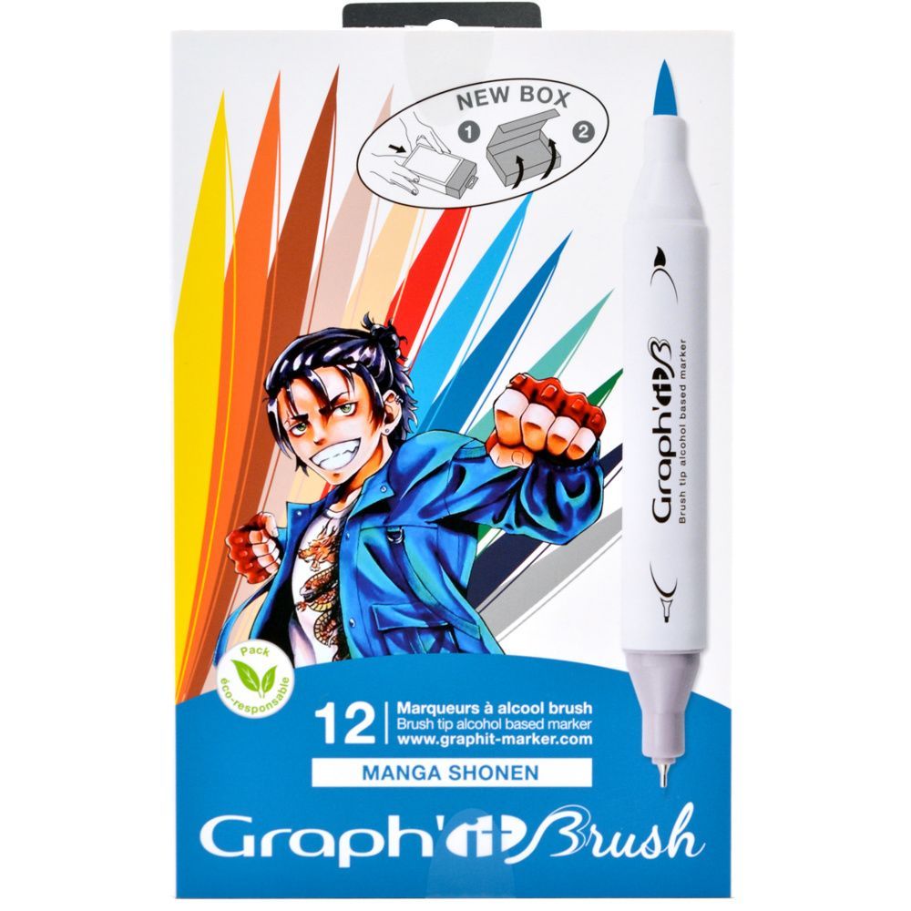 Parfait pour les adeptes du style manga, découvrez le nouveau set de 12 marqueurs à alcool GRAPHIT shonen!