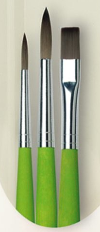 Manche court avec 2 pinceaux ronds n°4 et 8 (série 373) et 1 pinceau plat n°8 (série 374).